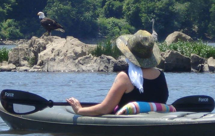 In February, 2013 I was diagnosed with a rare form of acute leukemia (APL). During my one-month hospital stay we didn’t know if I would ever be able to kayak at the dam again. I underwent daily chemo infusions for most of the summer, but during a break in July we were able to get out on the river again. Just as we merged onto the Susquehanna from the Octararo Creek, we floated up towards a boulder where a mature bald eagle had perched in all his glory.